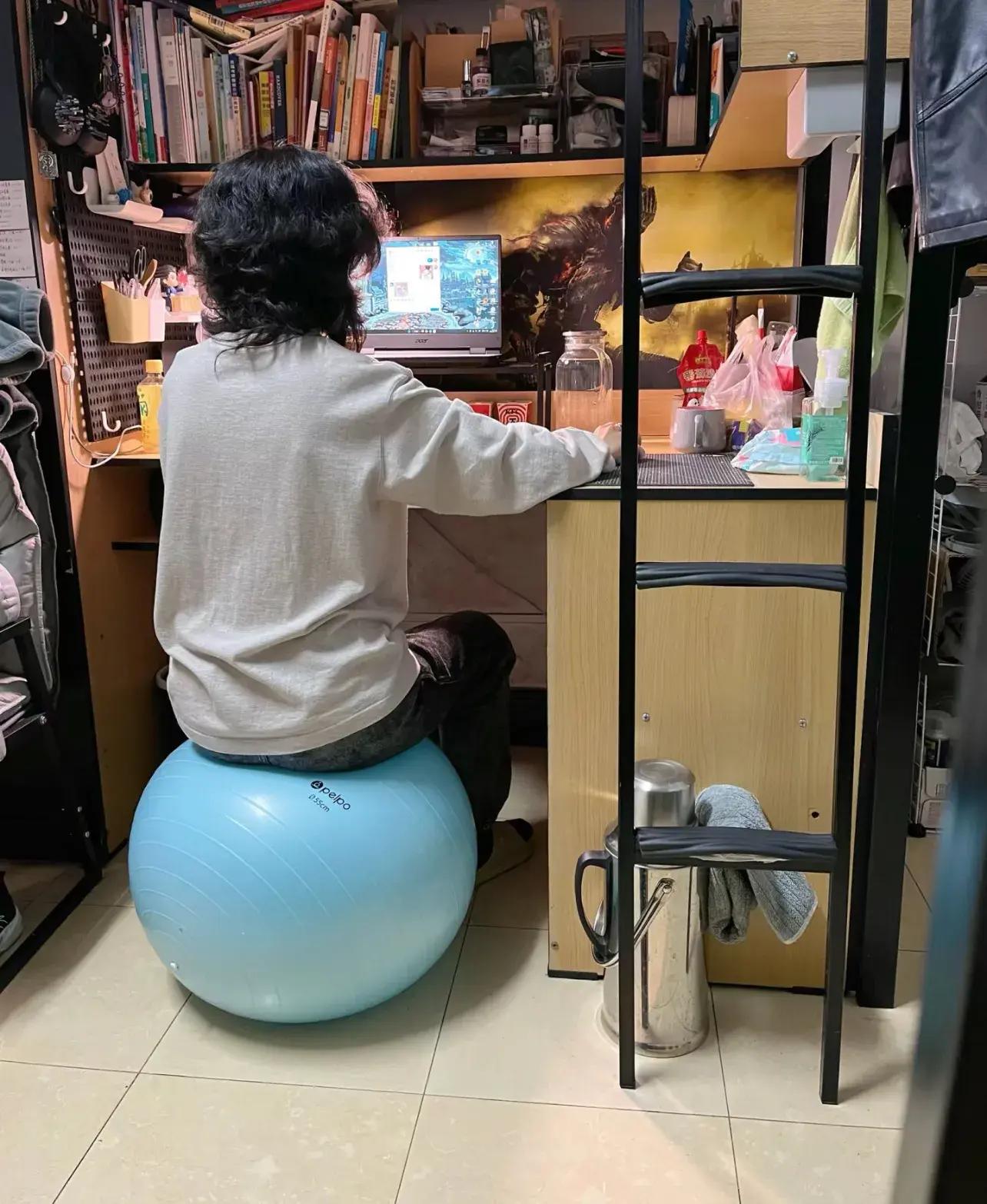我就給家裏弄了個瑜伽球,現在我但凡工作,就做上面,對腰間盤突出真的有效果。