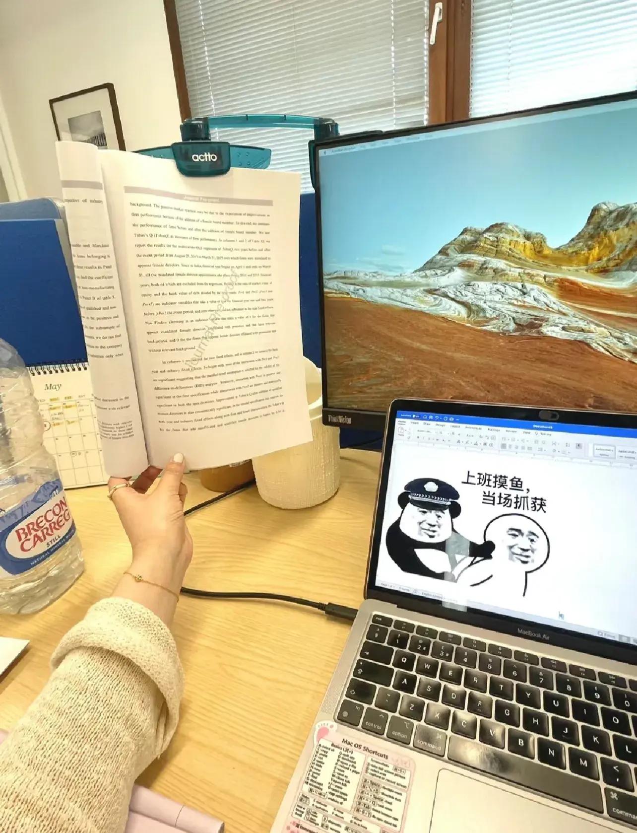 這是我目前工位上,唯一一個花錢買的東西,主要是對面是老闆,給夾子上夾個A4紙,摸魚更有安全感,雖然摸魚被他碰到好幾次……