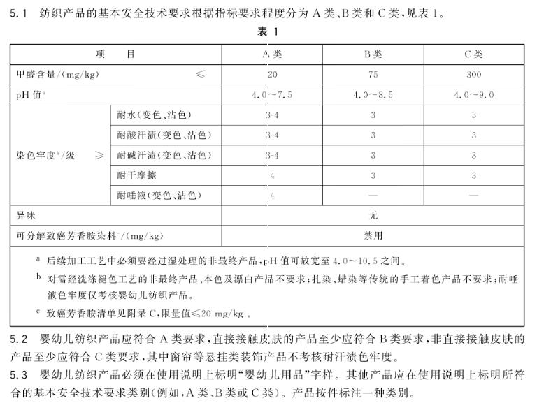 A類 主要是嬰幼兒使用的產品。這類產品安全性最高,對甲醛含量,PH值,染色牢度,異味等等都有嚴格規定。