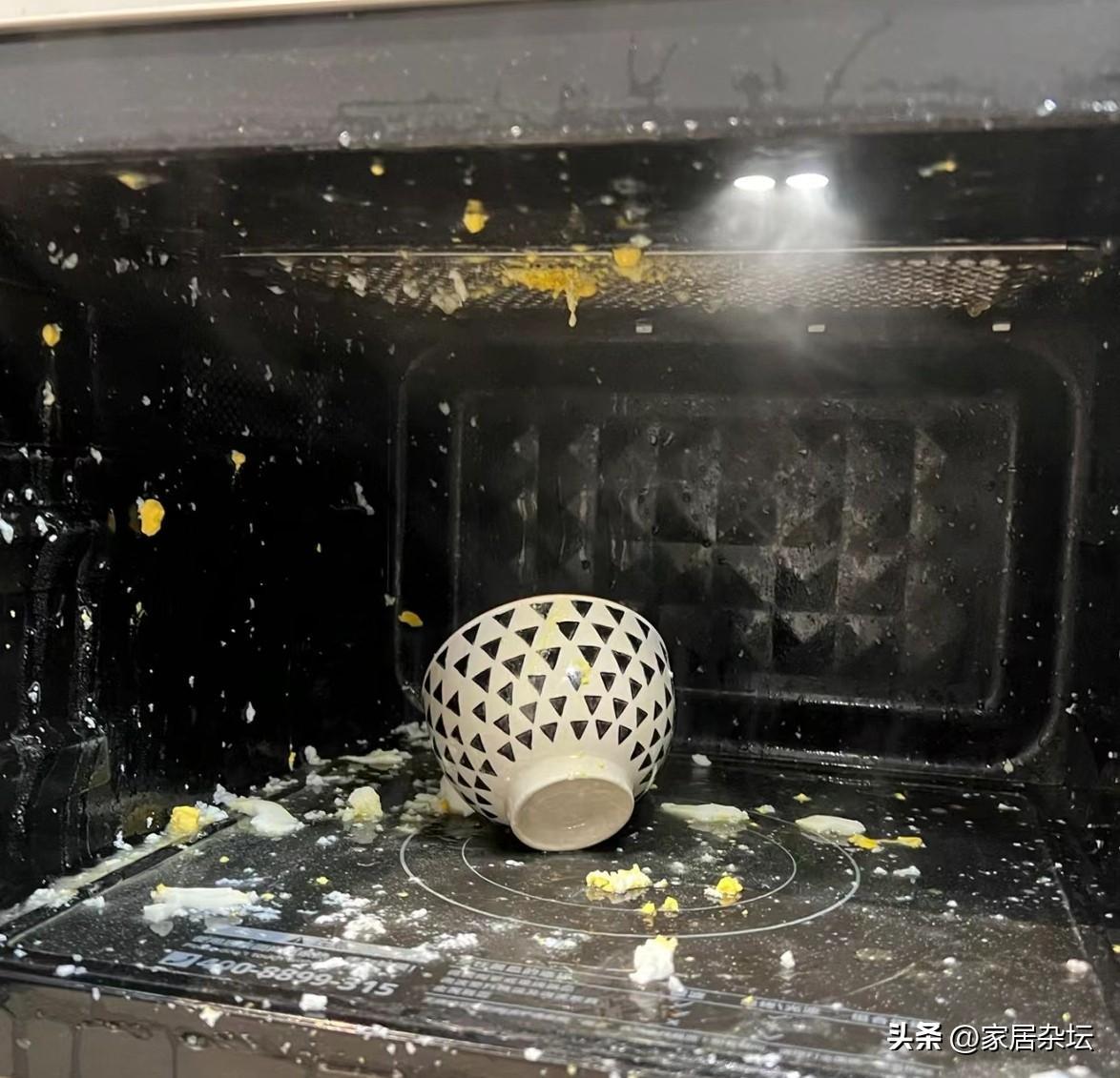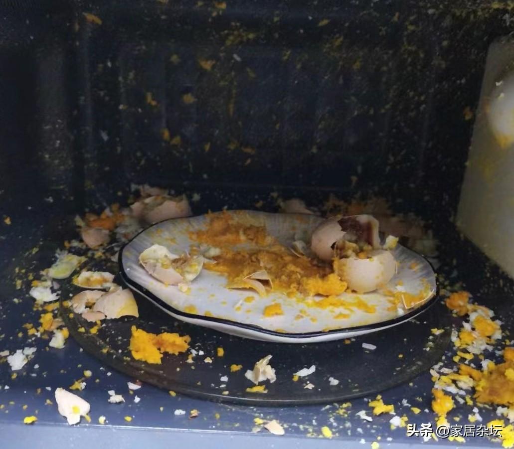 我前段時間用微波爐加熱茶雞蛋。設置兩分鐘,就出去了。回來打開一看,裏面到處都是飛濺的碎雞蛋末,我都看呆了。