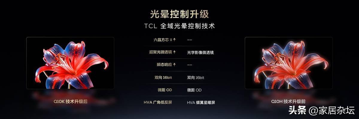 事實上,微距OD只不過是TCL全域光暈控制技術的其中一項技術,此外還包括晶方芯II、超聚光微透鏡、瞬態響應和雙向16bit、HVA廣角低反屏等先進技術。