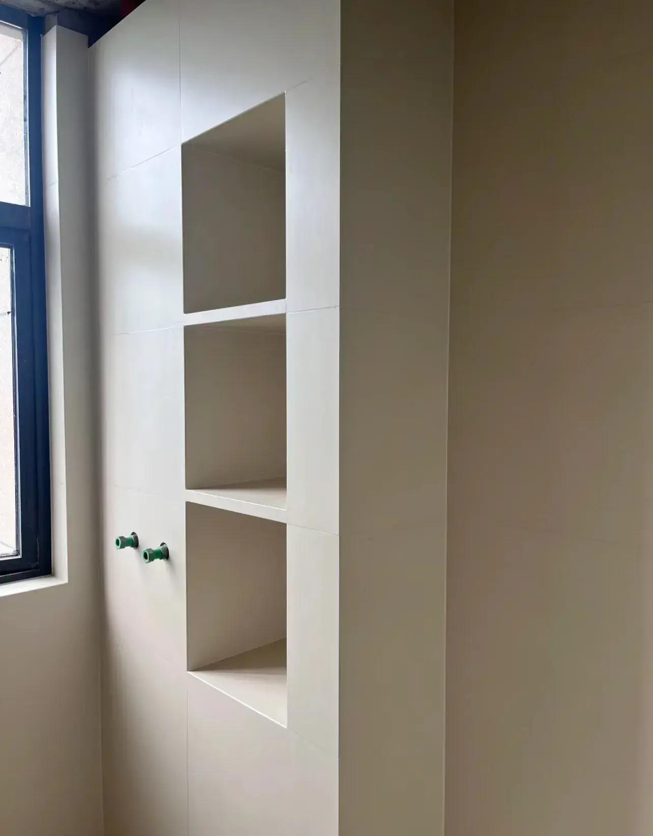 可實際上現代的家庭,幾乎不可能直接在牆上挖洞,所以一般都是在陽臺、衛生間等需要包管的地方,新建一個牆體,留出一個壁龕,用來儲物。