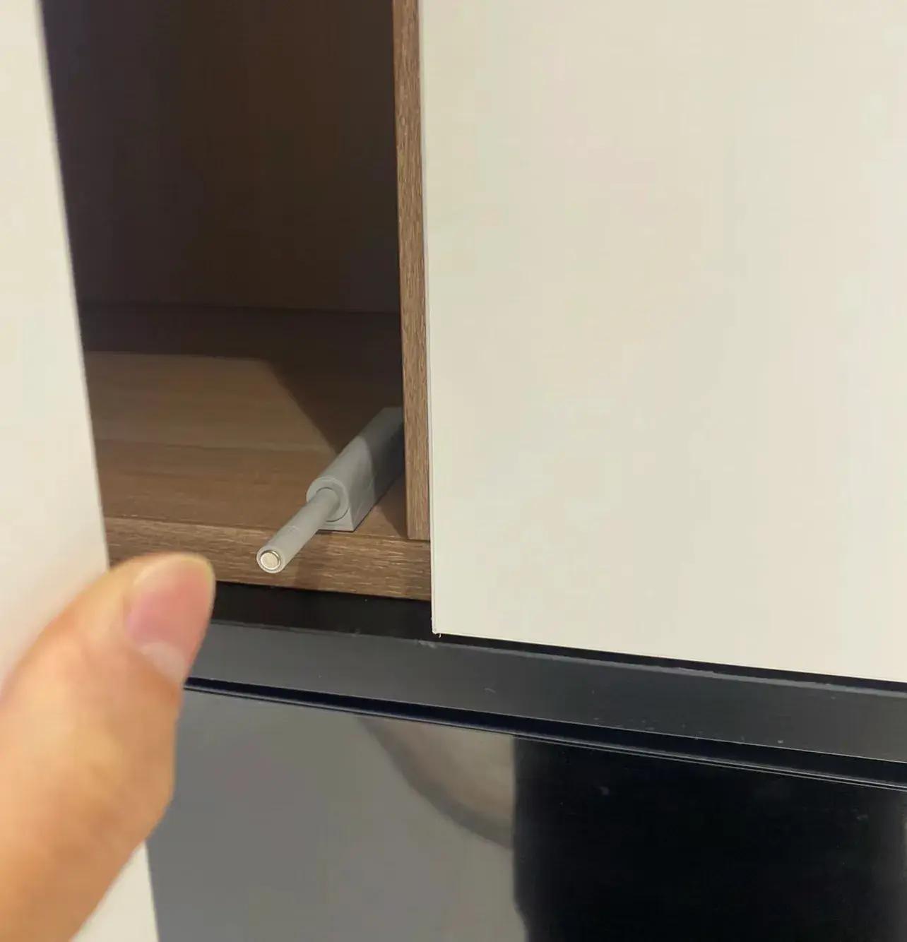 櫃門比櫃體,長上個兩公分,人開櫃門的時候,就能扣着這兩公分打開。