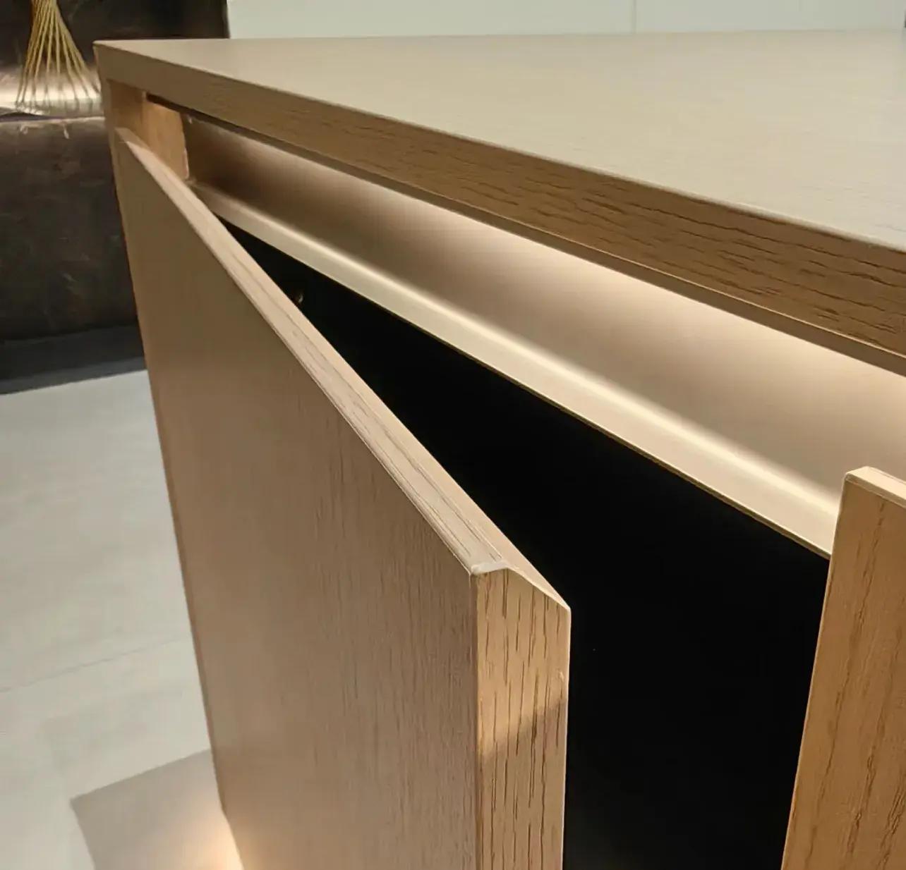 不僅侷限於櫃子側面,有時候櫃子的開放格、吊櫃的底部也做見光板。
