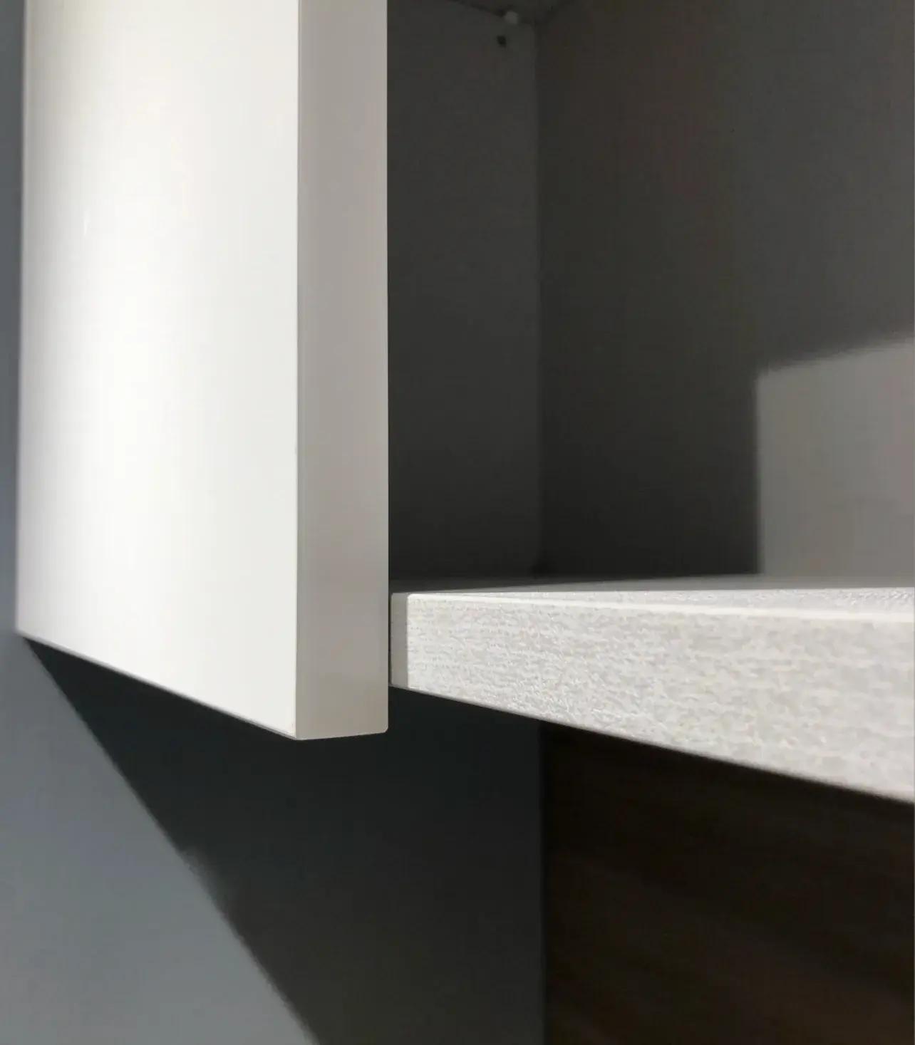 目的是爲了遮住異色的櫃體,讓櫃體和櫃門顏色統一,做得一層跟櫃門同材質的板子。