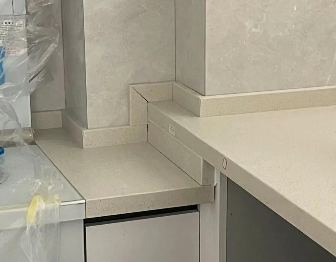 瓷磚收口:瓷磚陽角處,有縫隙,就需要用海棠角工藝或者是收口條給它遮一下: