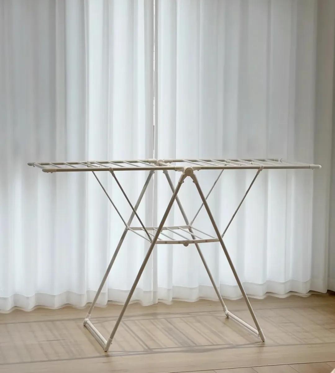 這種比較常見了,打開它放陽臺,曬乾衣物後摺疊起來,塞在角落。