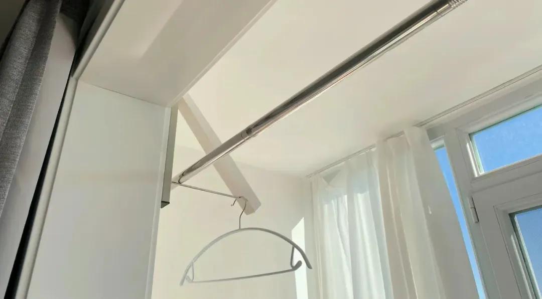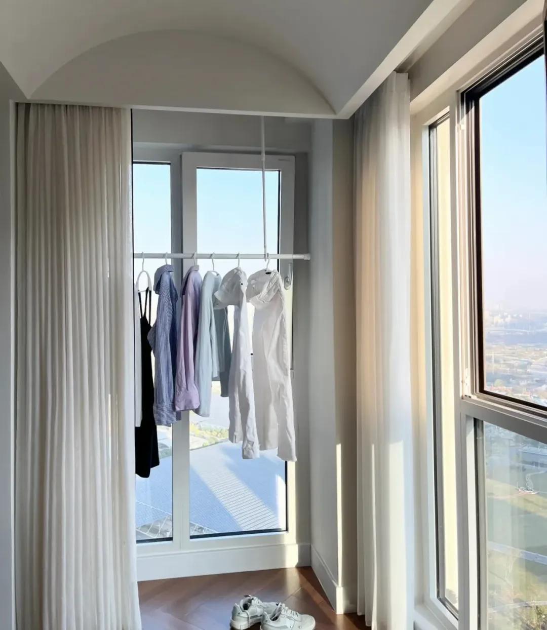 咱們可以把飄窗陽臺也利用起來,只需要在上方加裝晾衣杆,晾衣區又擴大了!