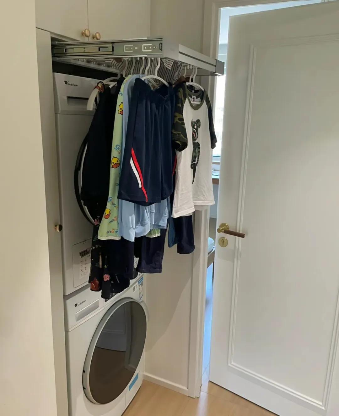 比較適合沒客人來家中拜訪的情況下,少量手洗衣服需要晾曬,直接抽出烘乾機上方的晾衣架,曬乾了再推進去,隱蔽起來。