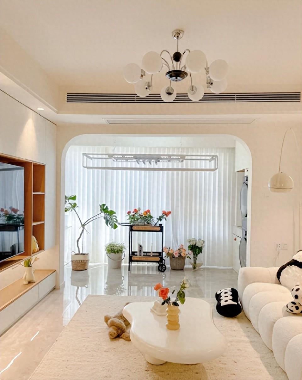 把晾衣區放在北陽臺,南陽臺用來享受生活,美滋滋~當然也有天氣不好,或者氣溫低的時候,北陽臺的衣物比較難幹,這個時候就需要配合烘乾機使用了。