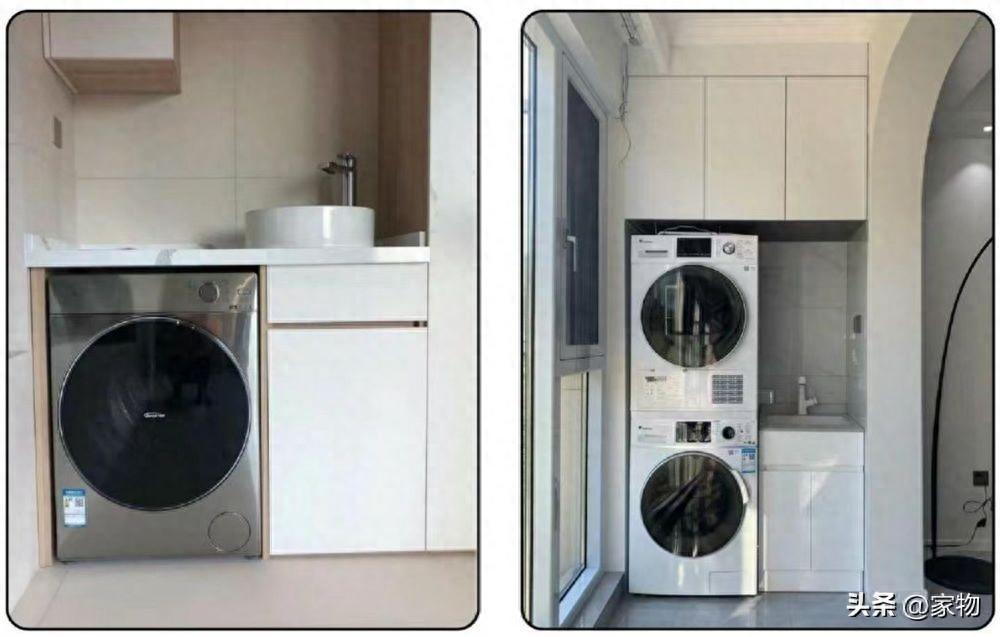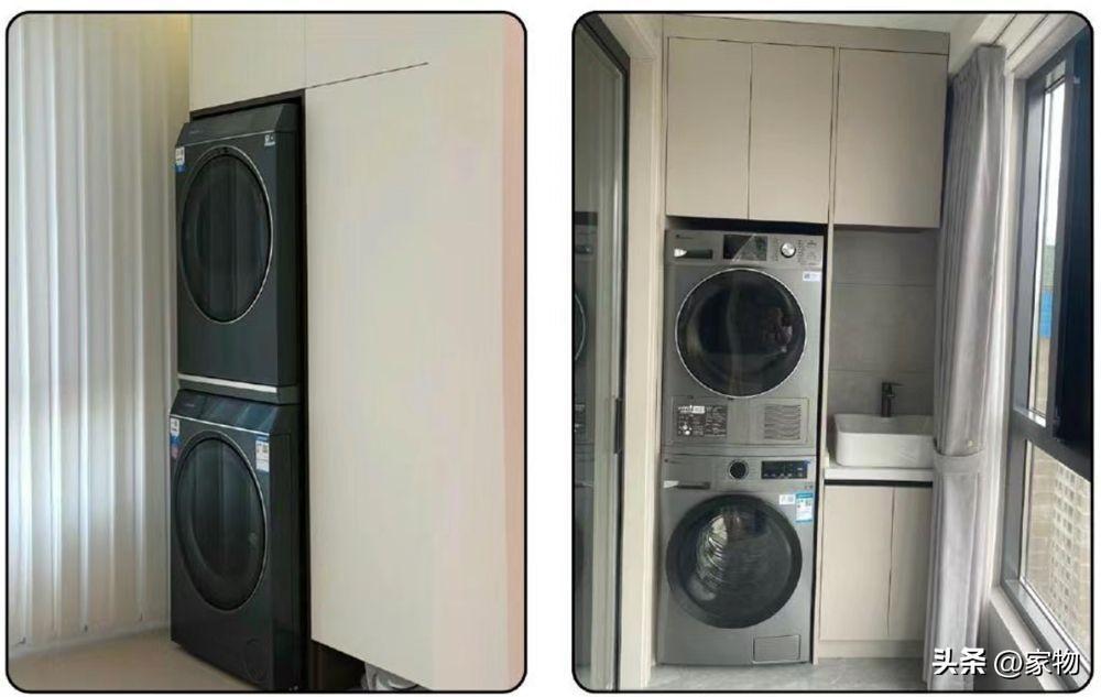 一般來說,洗衣櫃都是挨着埡口,做成和埡口同樣的寬度,我是真不建議大家把洗衣機嵌入櫃子後,還保留着外凸的樣子,看起來實在是太彆扭了,要麼加深櫃子,要麼買超薄洗衣機,埡口太薄的話甚至可以加長一點點牆面。