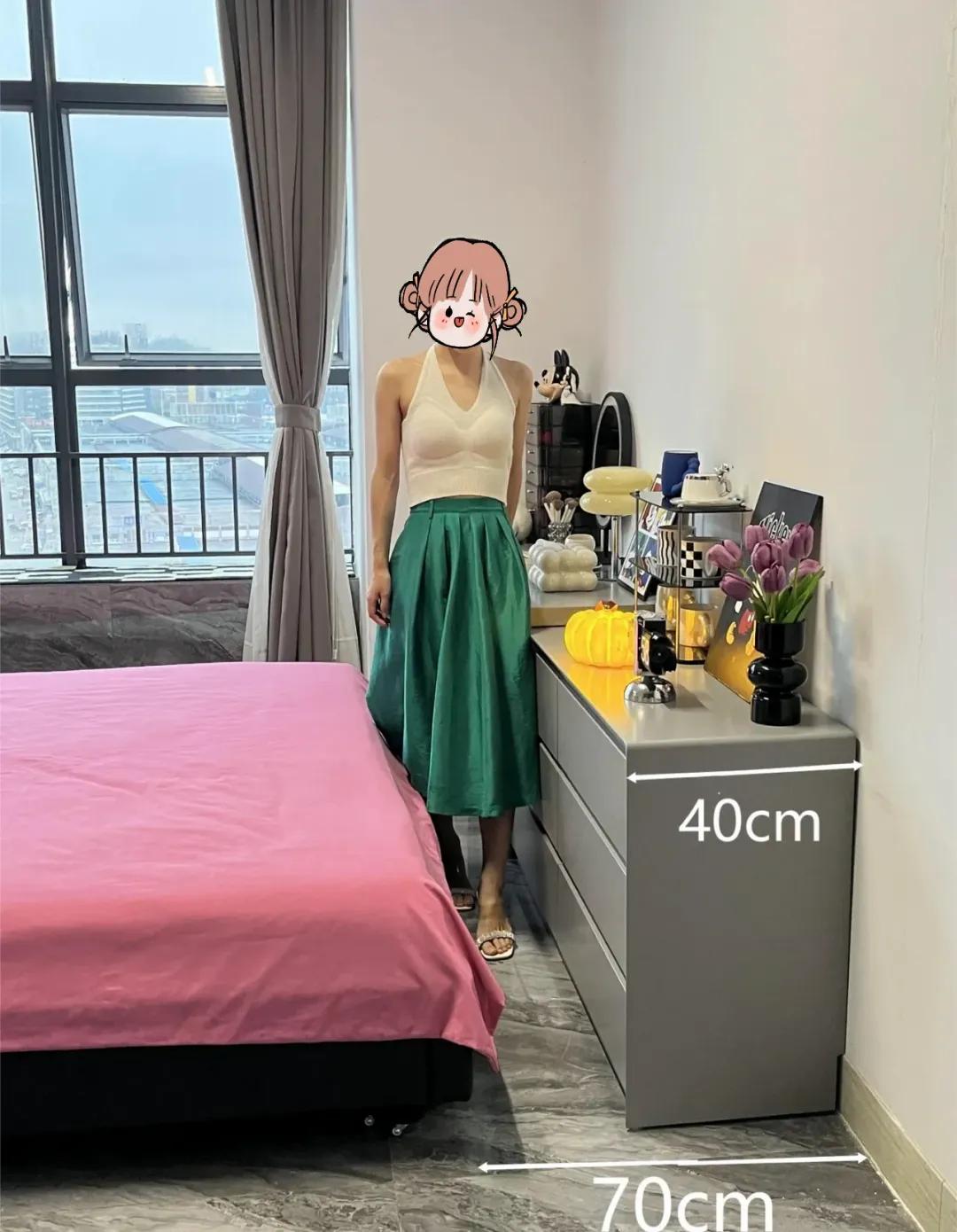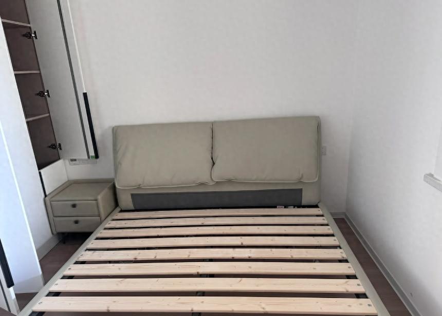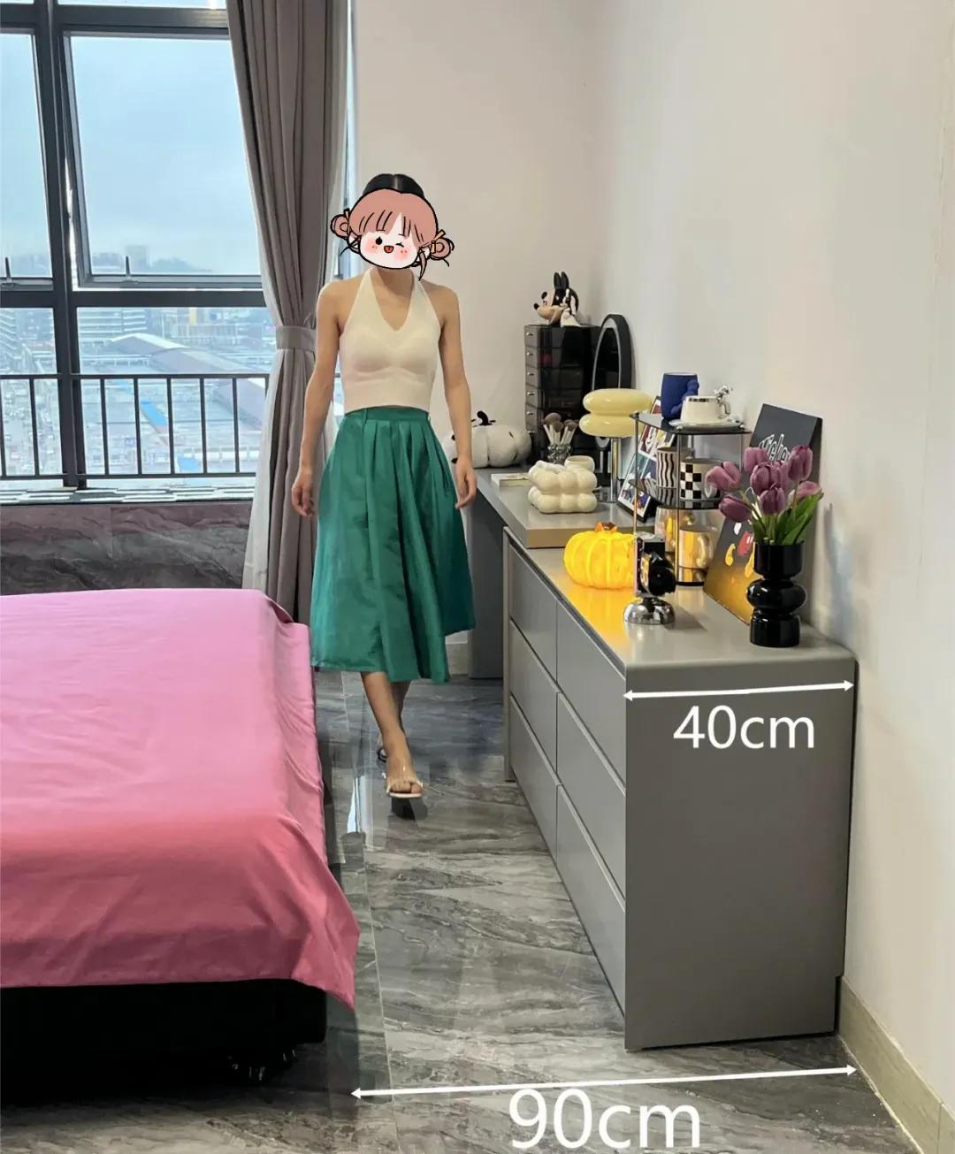 最終這個小夥伴, 換了無牀頭櫃,長度爲1.9的定製牀,得到50cm 的極致壓縮空間,也算是補救回來了。