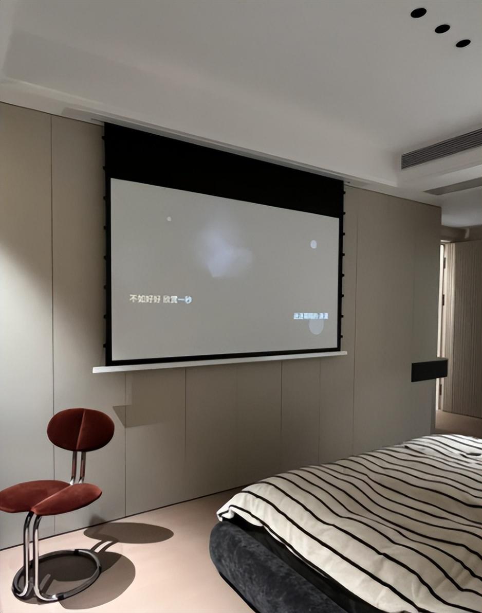 臥室裏使用投影儀,安裝電動幕布,捨棄電視,反正看電視也沒有以前多了。