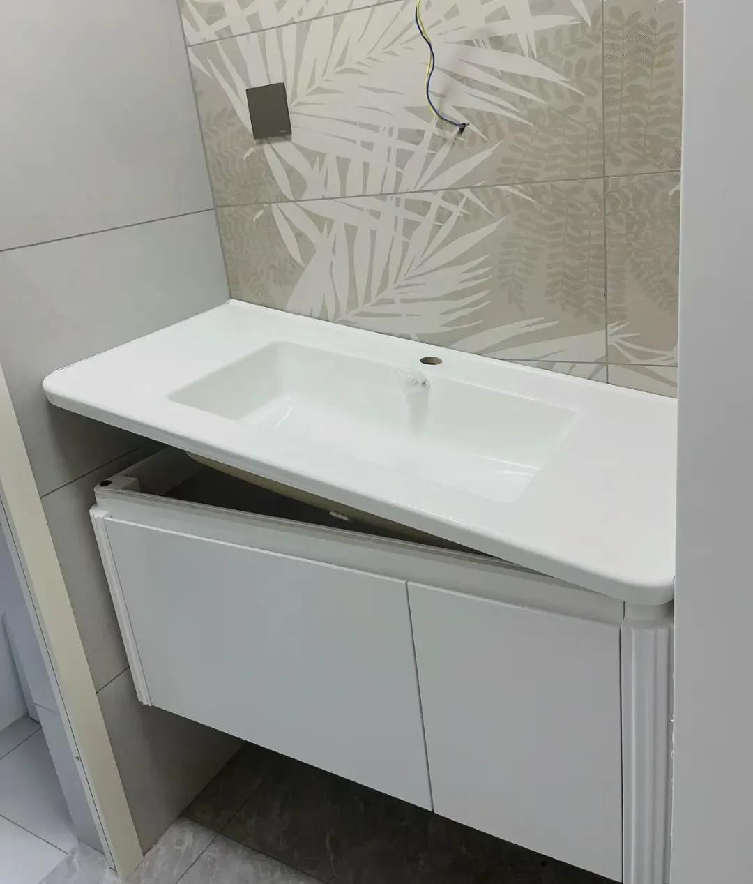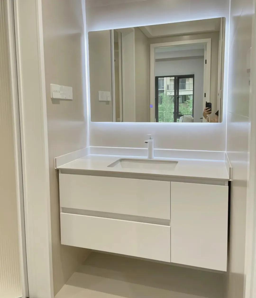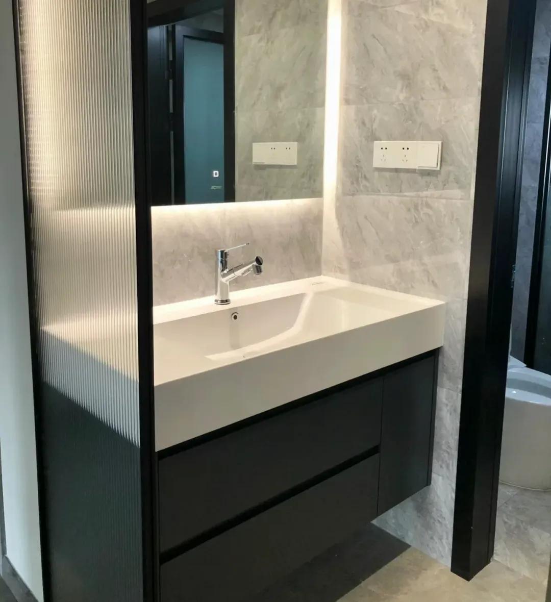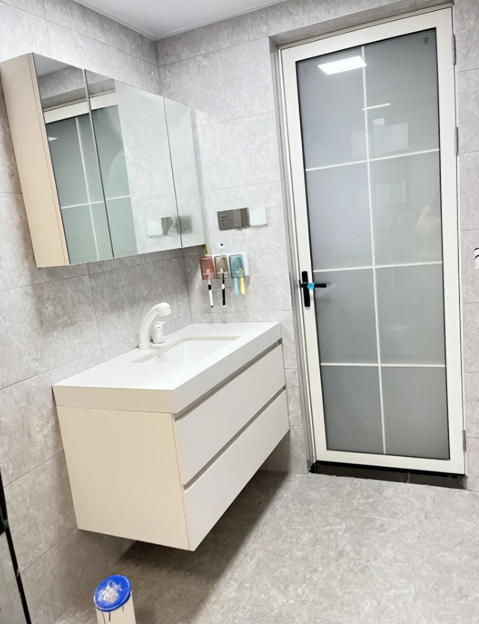 還有小夥伴做的乾溼分離,浴室櫃在外側兩堵牆之間,量的時候好好,買的尺寸齊齊整整,一個不成想,先裝了門套,面盆放不下了...