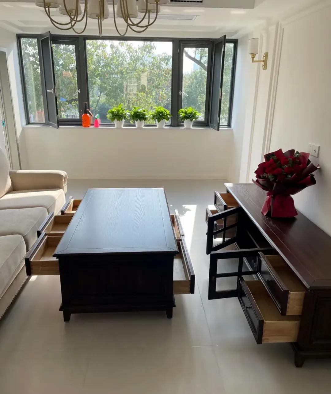 有小夥伴想着,茶几收納用處多,買大一點好,結果和買沙發一樣,一落地人就瘋了,茶几太大了,顯得客廳好小...