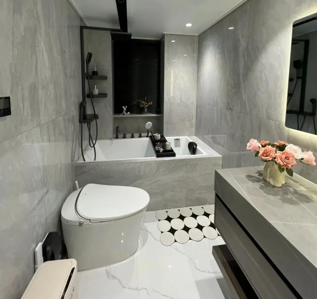 如果浴缸買小一點,還可以讓瓦工師傅做二道工序,在間隙的地方砌上一堵牆,放置淋浴噴頭之類。