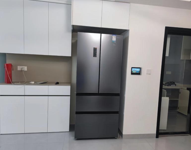 ④全嵌式嵌入冰箱,與櫃子完全一體,不在意根本找不到冰箱在哪裏,外觀上做到了極致美麗與和諧。冰箱整個背部都是散熱管,嵌入櫃子後,通過底部格柵網進氣,背部循環散熱, 一個缺點,貴。