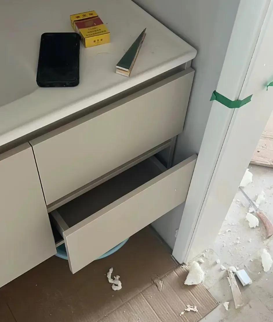 還有浴室櫃做了抽屜的, 門套把抽屜擋的死死的。