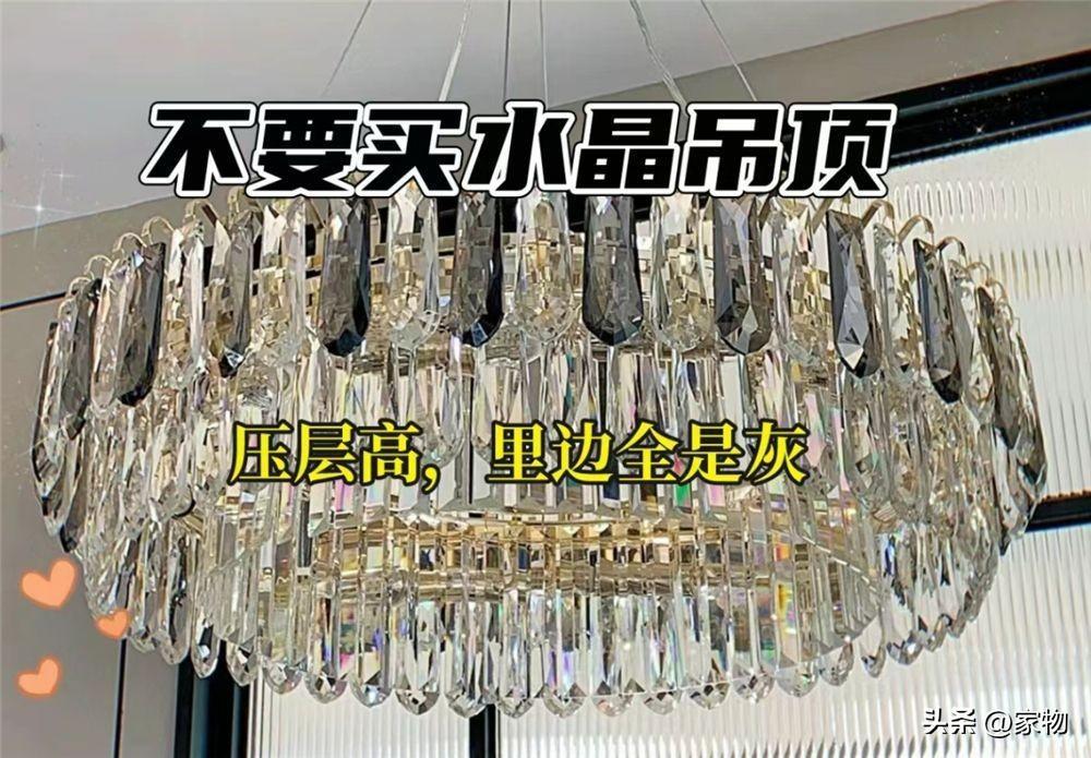 水晶吊燈確實是顯得華麗好看,但仔細問問自己,真的需要嗎,它真的實用嗎?壓低層高是一方面,另一方面,裏面都是灰塵,後面摘下來清潔打掃還是掛在上面清理,都超級費事。