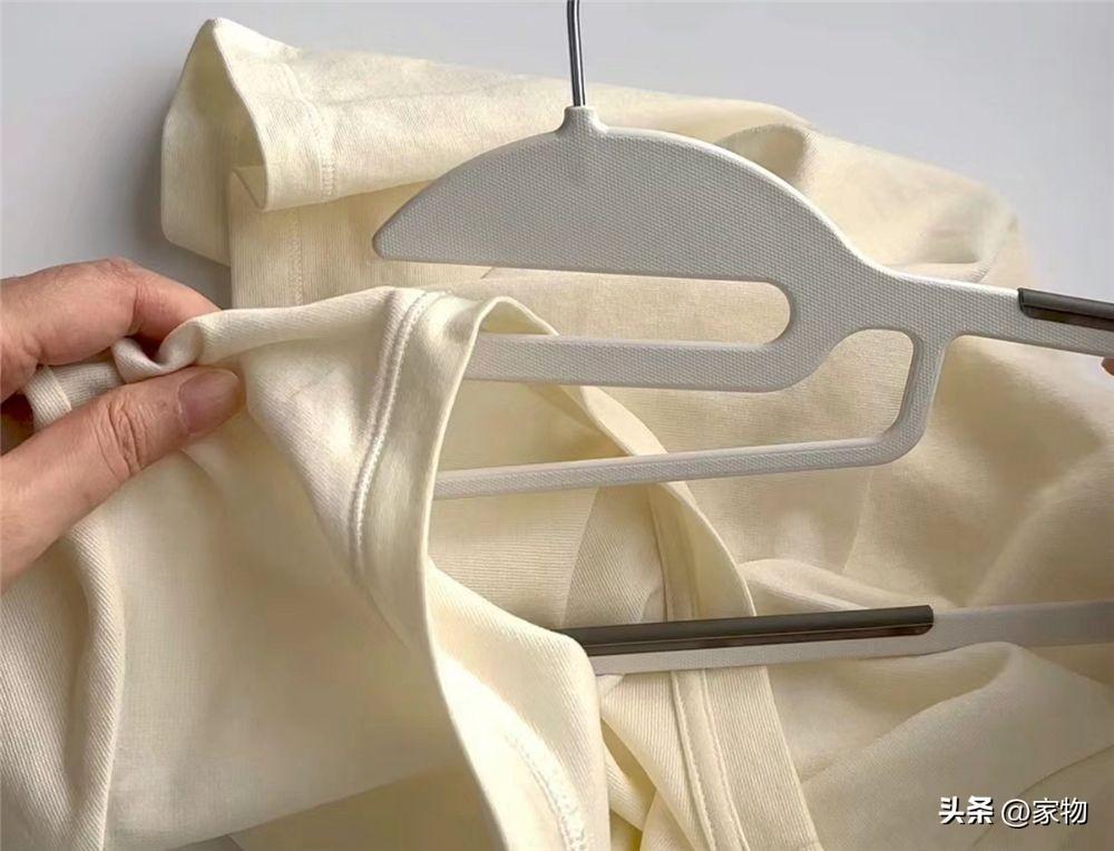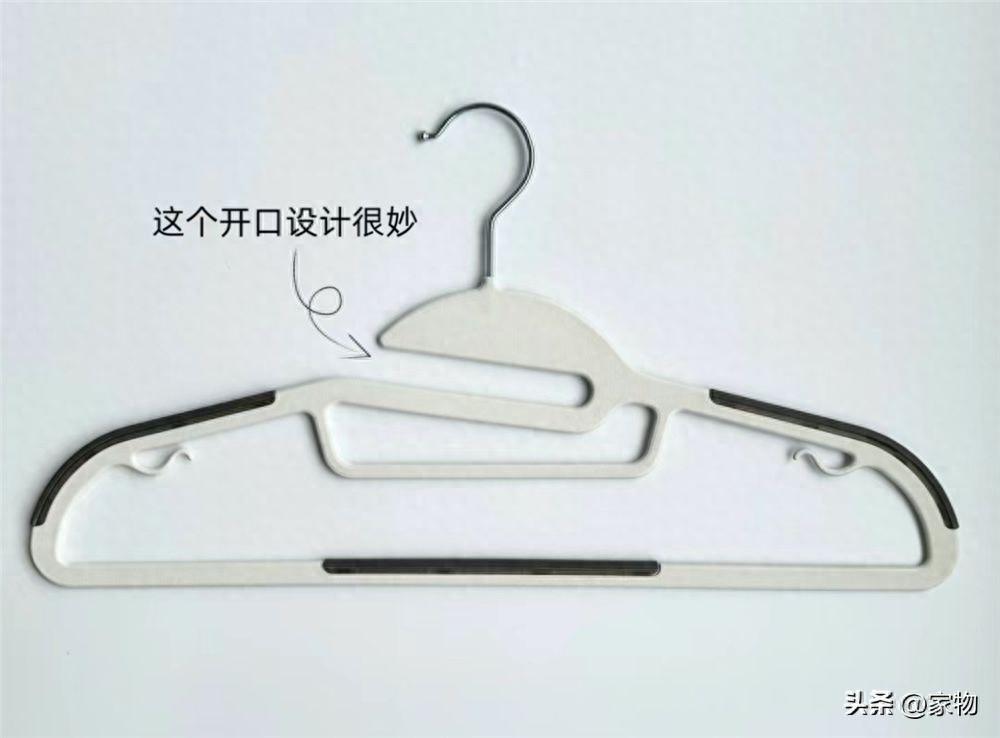 每次掛衣服的時候,可以先將衣領滑入一邊的開口,再去刮上另一邊,能比直接撕扯衣領更加柔和,掛搭上去也能保持同樣穩定,真不知道是誰想出來的這個小衣架,絕了。