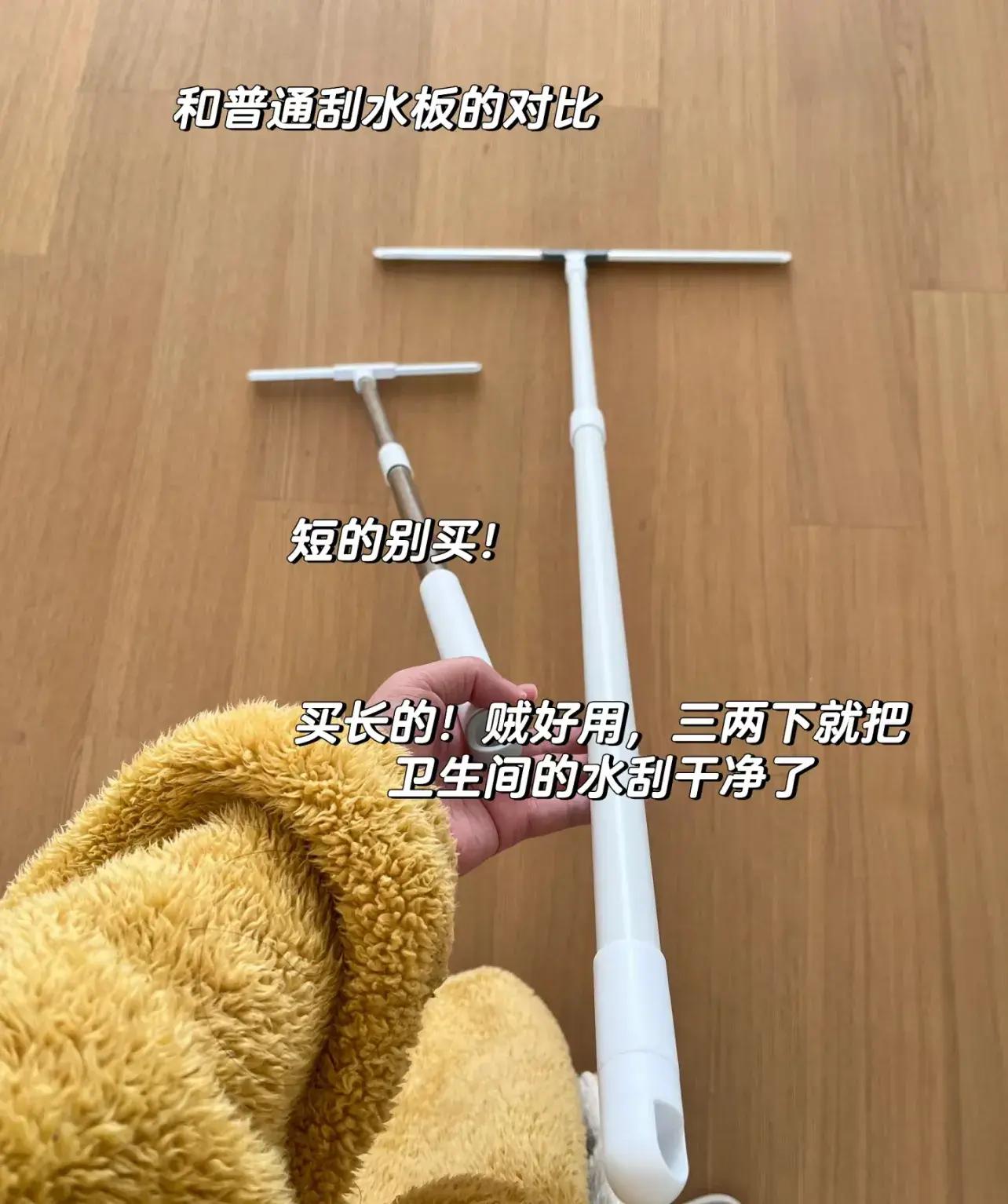 首先是,原本洗完澡要用拖把來回拖啊涮啊好幾遍的活兒,用它蹭蹭兩下就乾淨,關鍵刮過的地面賊乾爽,是那種衛生紙掉下去都不會有印子的幹;