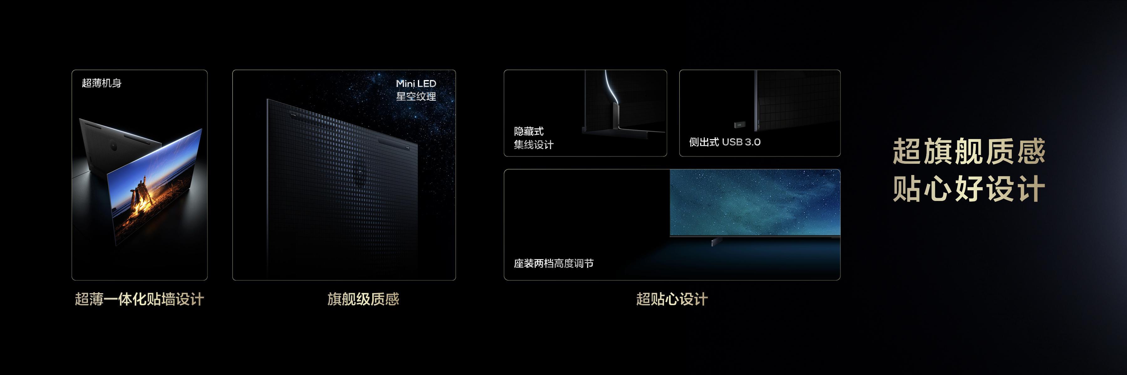 值得一提的是,Q10K不僅畫質、音質領先同級,並且還實現了超薄機身設計,擁有超高顏值。得益於全域光暈控制技術中的微距OD技術,以及TCL將音響、機芯、電源都進行了薄型化處理,Q10K背板沒有任何凸起。加上一體化的機身、背板的Mini LED星空紋理設計,Q10K無論是掛在牆上、放在電視櫃上,還是落地安裝,都能與客廳完美融合。