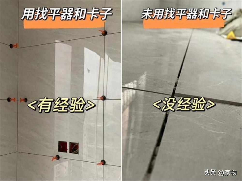 大家別不信,我真見過很多瓦工學員連找平器都不用,直接就上手貼磚,這種情況下貼的磚,坑坑窪窪歪七扭八也是正常,影響美縫事小,入住後容易絆倒事大。