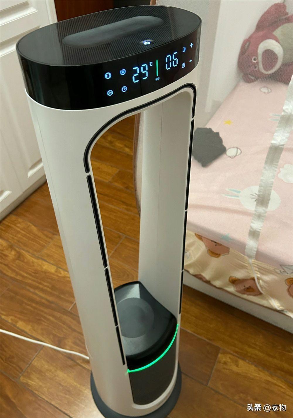 但無葉風扇基本上就是個小小的柱形,搖頭也是在機身範圍內,放在房間角落裏又不顯眼又不佔地,怎麼說呢,真的感覺有別於傳統風扇,且很明顯。