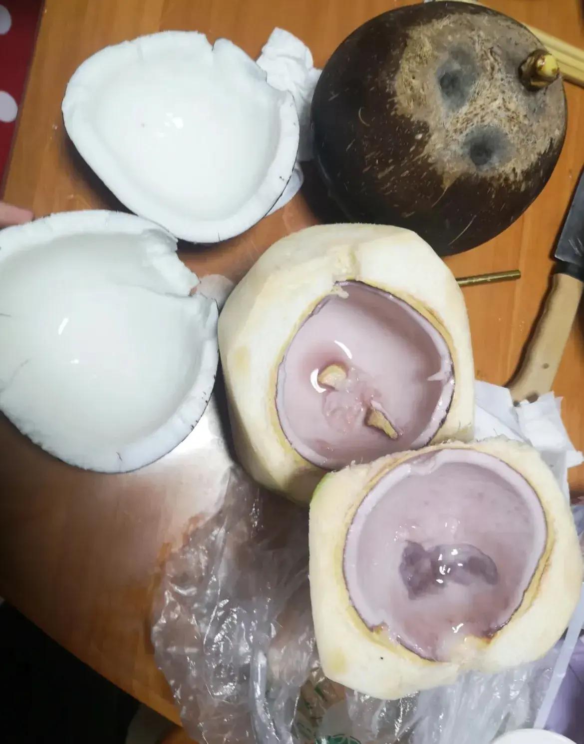 順便也提醒一下,比如芝麻香蕉,只是皮壞了,勉勉強強可能還能喫,但一定要拒絕發紅的甘蔗和發紫的椰子。