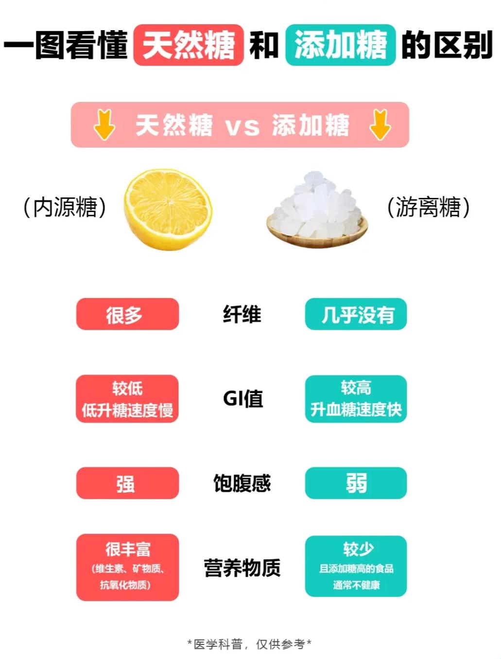 需要區別一個概念就是,遊離糖和結合糖是兩種不同類型,位於蔬果、穀物裏面的糖是天然的結合糖,它們結構穩定,不易被快速分解,對牙齒腐蝕以及嵌在健康危害較小。