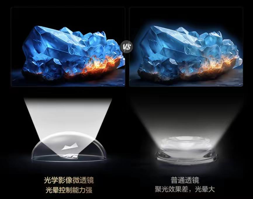 這其中,光學影像微透鏡作爲Mini LED控光燈塔,是實現精準控光的關鍵,在相同的分區和亮度下,對比普通Mini LED而言能夠更精確地實現像素級點控光,呈現出細節豐富的視覺體驗。