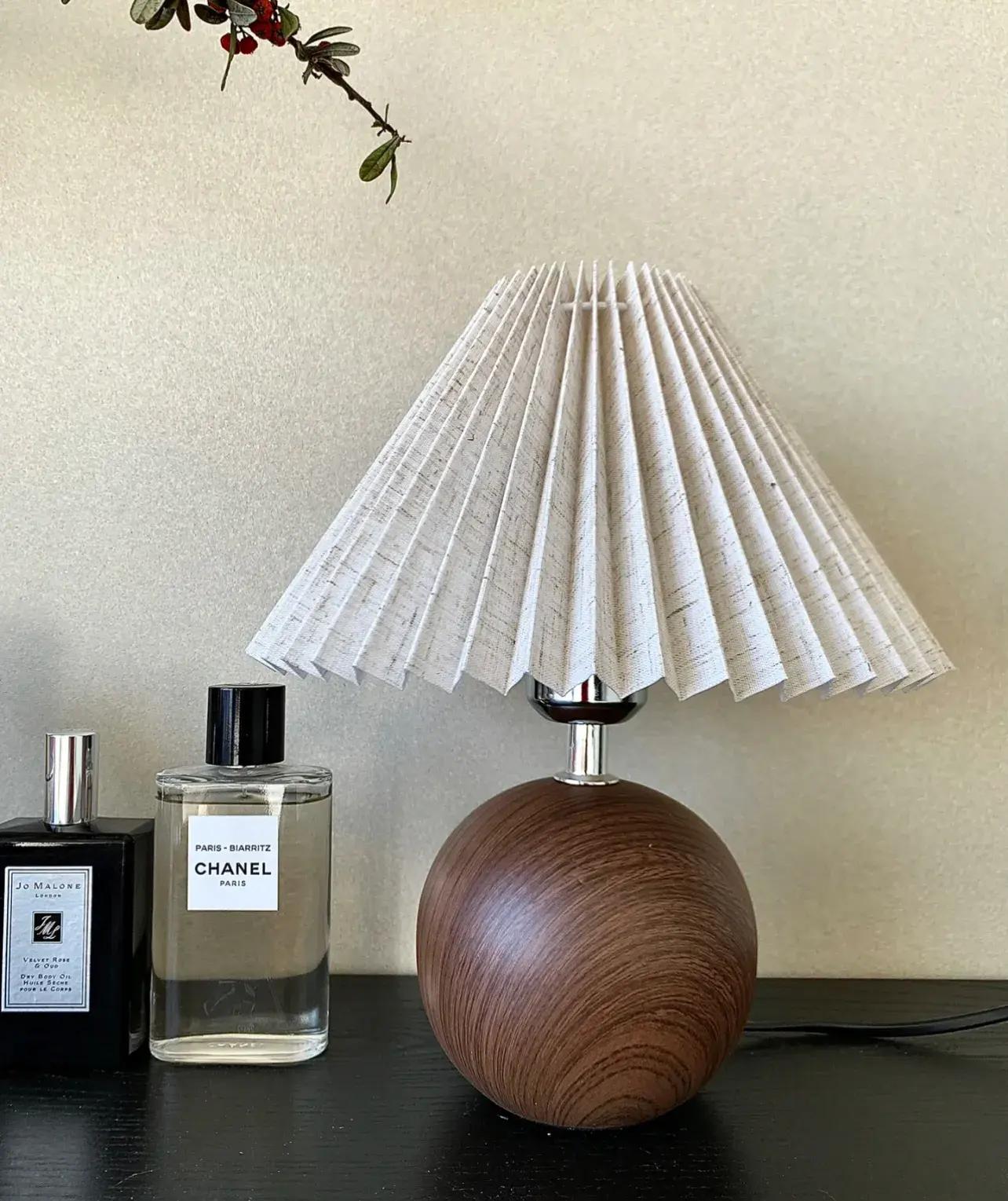 百褶燈就已經夠好看的了,還搭配上了胡桃木的元素,讓這個檯燈看起來更像是藝術品。