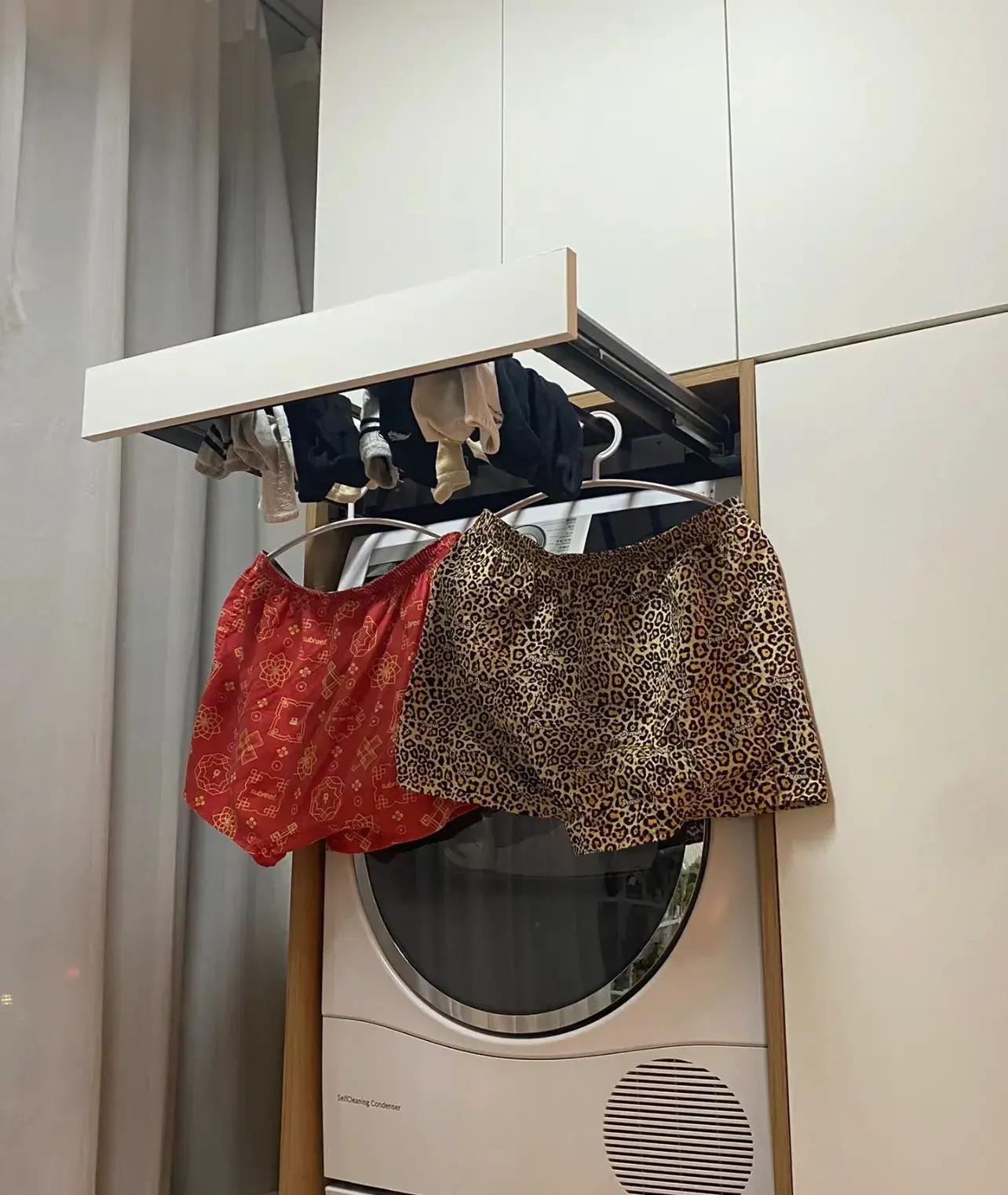 然後,也不知道是哪位真神第一給烘乾機上方設計了這個抽拉晾曬架。