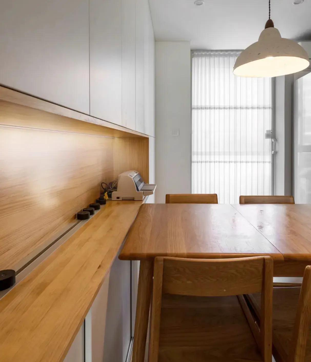雖然,收進去之後,顯得餐桌略顯臃腫,但好在也是個能解決問題的靠譜方案。