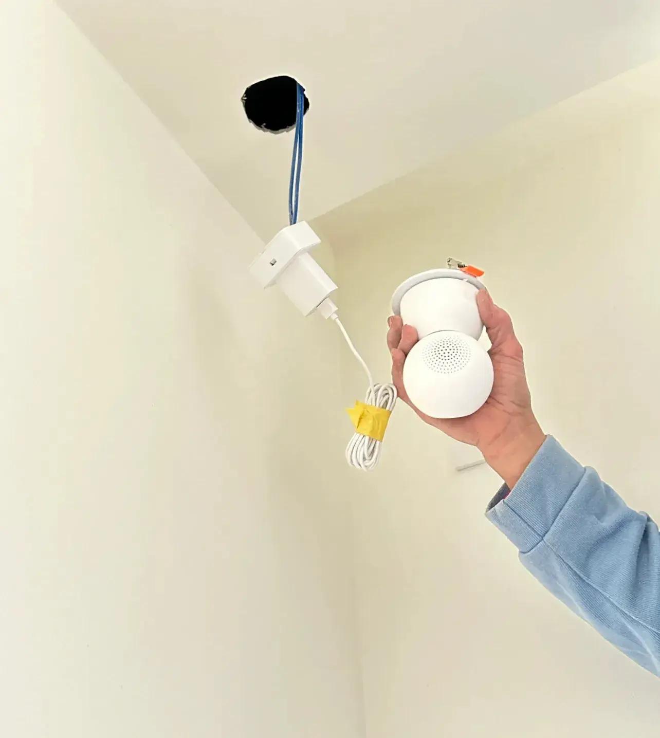 然後預留一個電源線,接上小插座,就能把電源線這些全部藏在吊頂裏了。