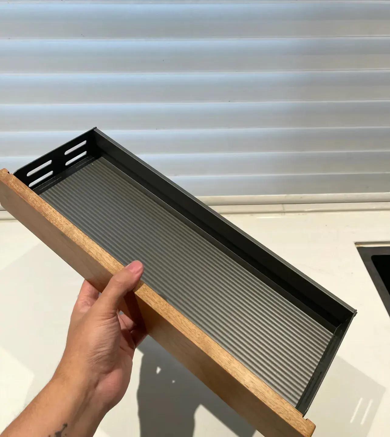 最上層,可以當作擴展的檯面用,做完飯盛好的菜、備菜盤、準備要用的食物、紙巾、廚房溼巾……均可放在上面做臨時收納。
