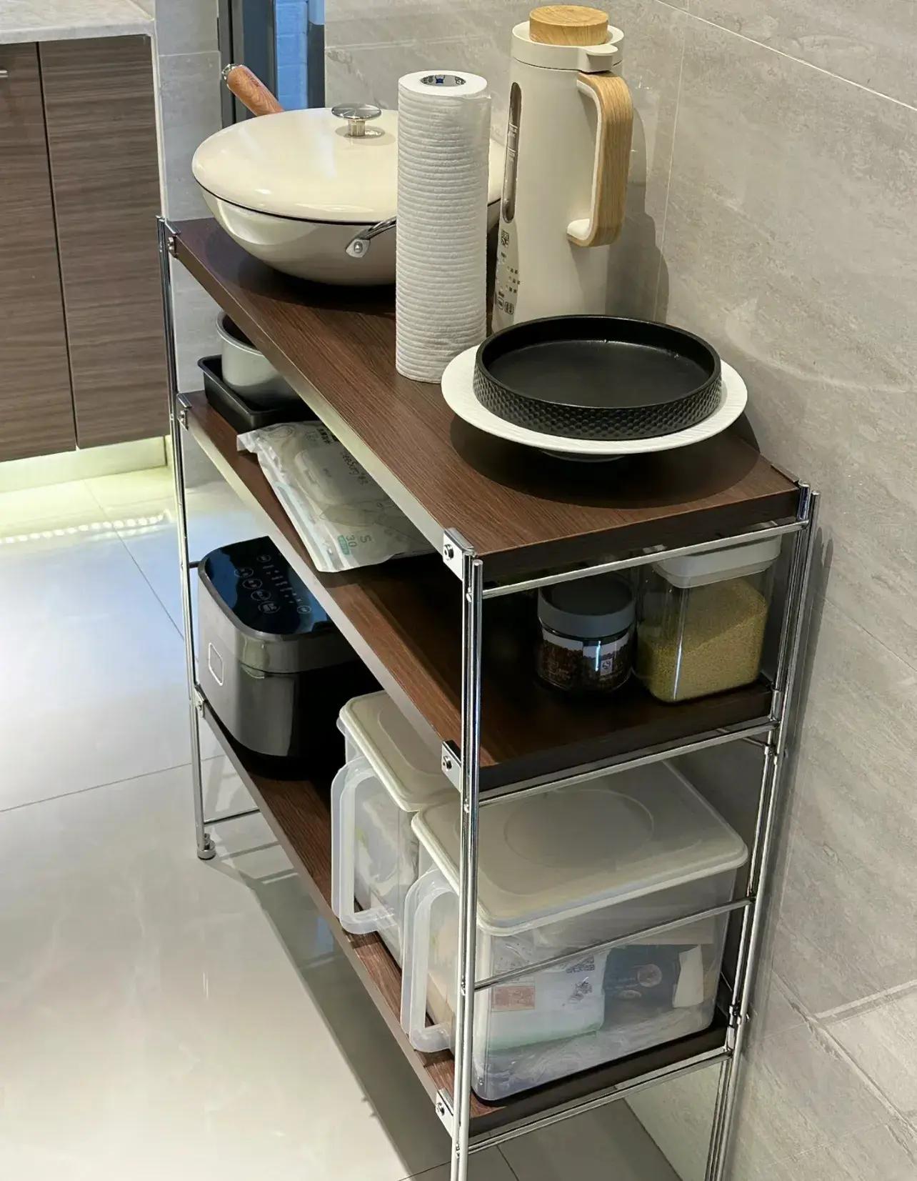 最簡單、便捷且效果還不錯的方案便是給廚房添置小家電收納架。