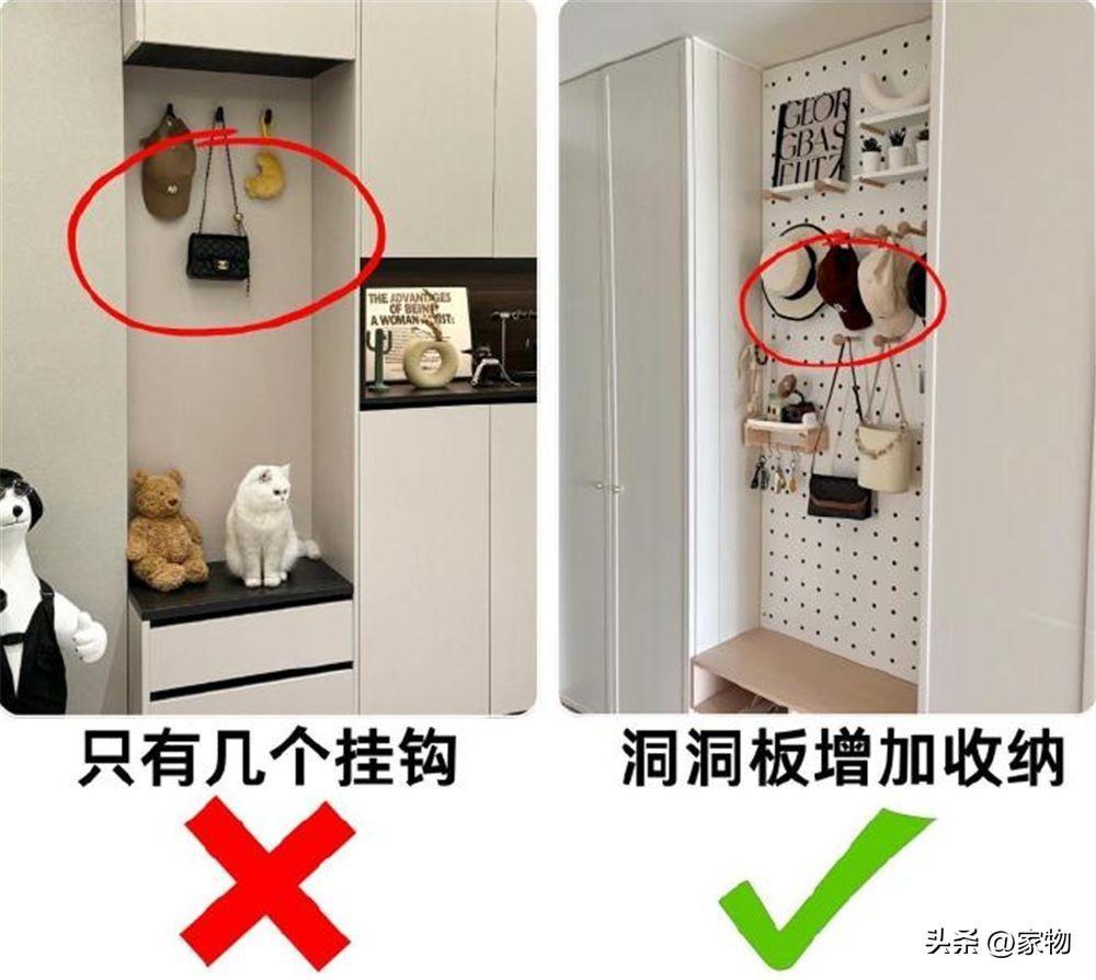 與其說是鞋櫃上方掛衣區的掛鉤不足,倒不如說是沒有合理安排好,畢竟掛鉤太多,放太多衣服也顯得亂。