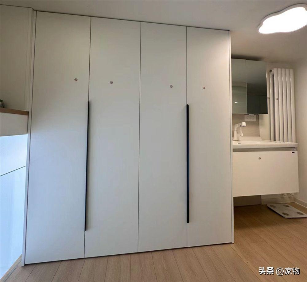 沿着樓梯走上二樓,迎面就是一組大衣櫃,四櫃門都做了通頂設計,裏面足夠收納這位姑娘一個人的衣物和大件的換季被褥或是外套,關上櫃門後整整齊齊,不會顯得雜亂無章。
