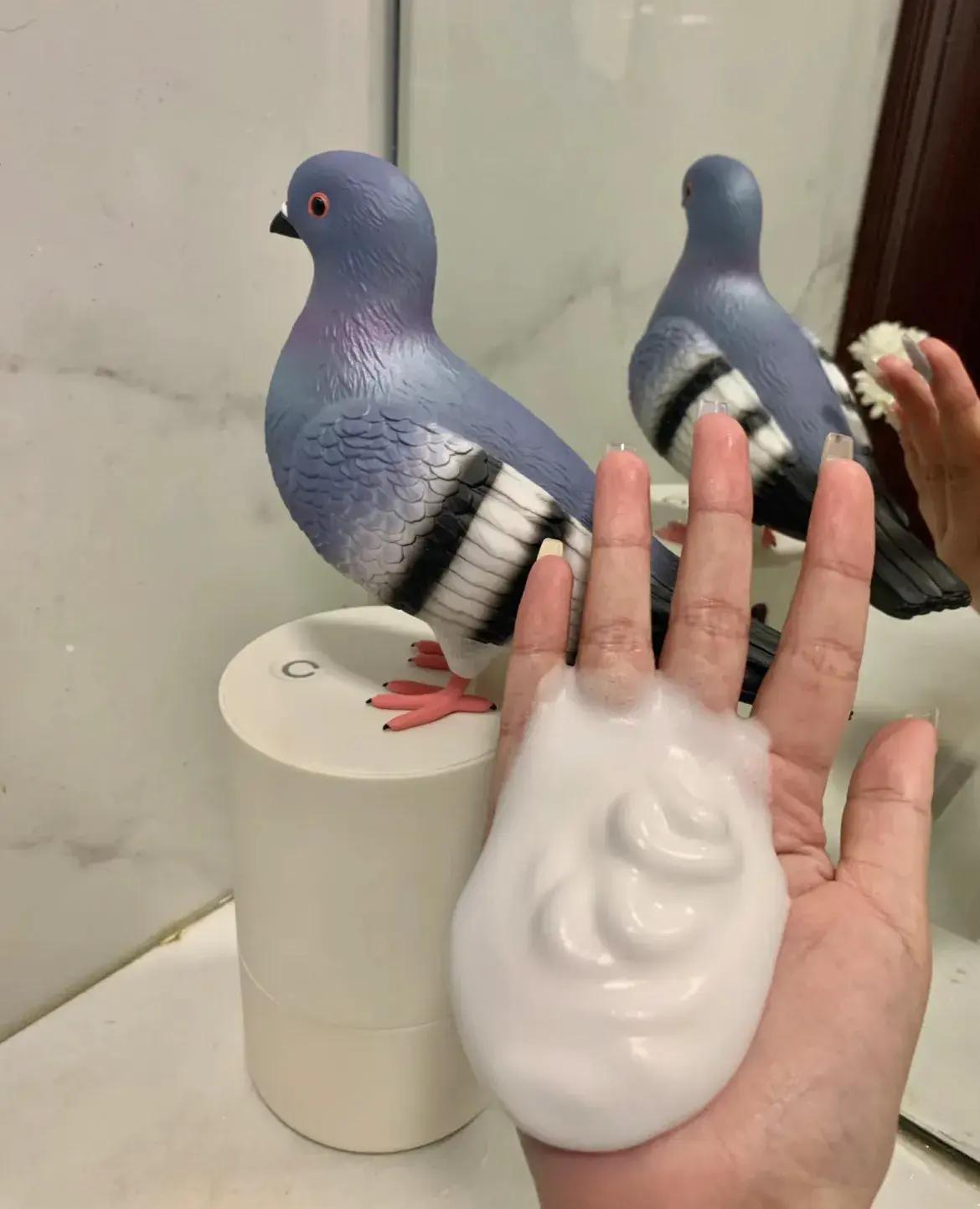 看到這玩意兒的第一眼,我真服了設計師的腦洞了,誰能接受用鴿子拉的粑粑洗手?你這根本沒想着賣吧!