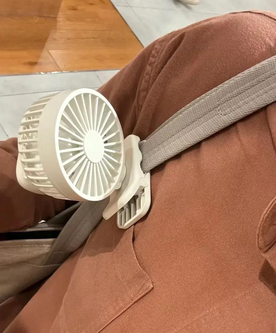但凡出門就要把它拿上,一來是裝到包包裏,很小巧攜帶方便,二來是可以夾在包帶上、領口上、太陽傘上,比手持小風扇使用方便。