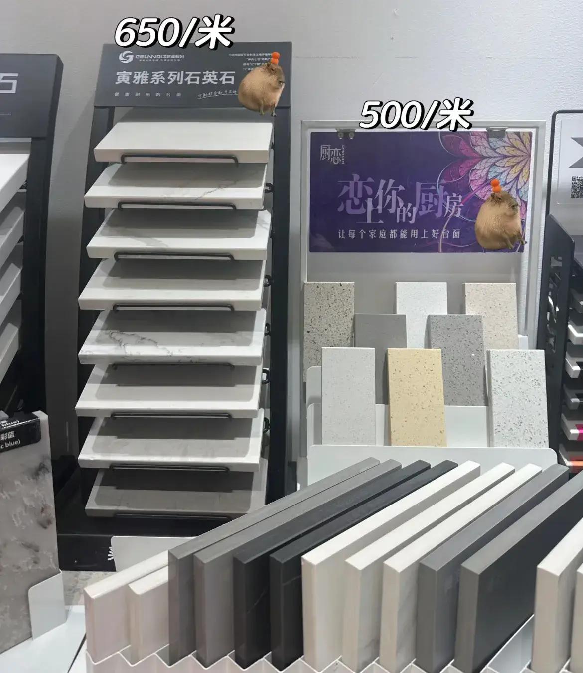 需要注意分辨,同品牌裏,也有高低端產品之差,那些低端便宜款,也會是石英石摻半的。