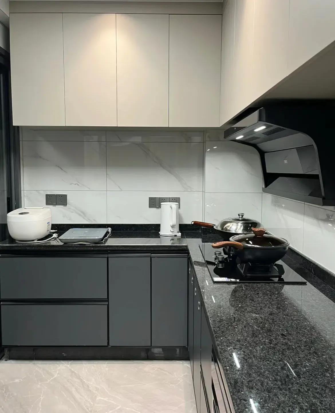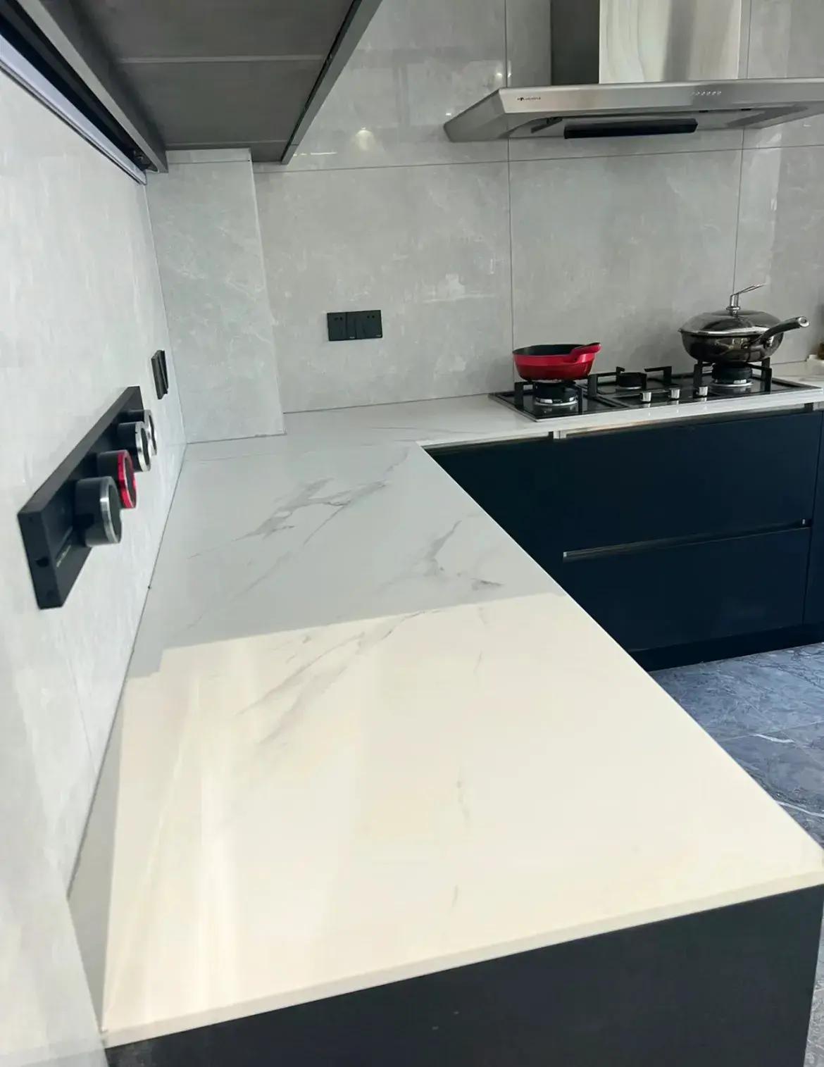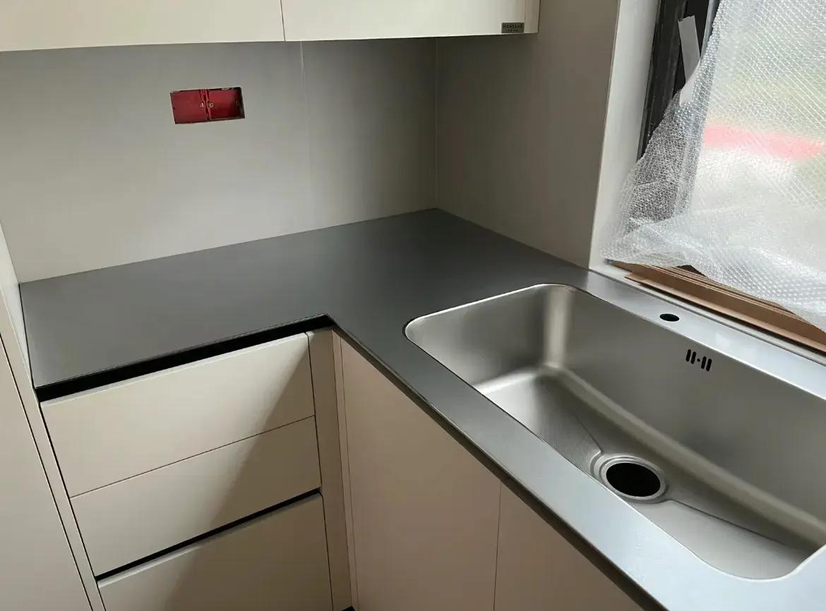 巖板是近幾年新興的檯面材料,硬度極高、吸水率幾乎爲零,作爲檯面是非常好的選擇。
