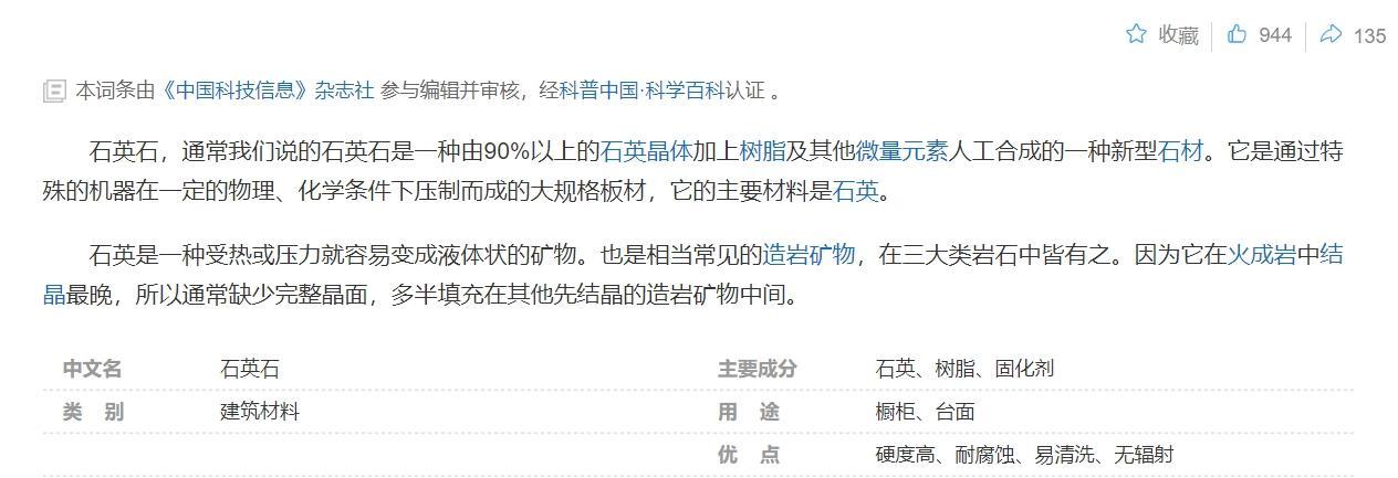 這也剛好提醒了我們,在選購檯面石材時,得關注石英石(石英砂、二氧化硅)含量比例。