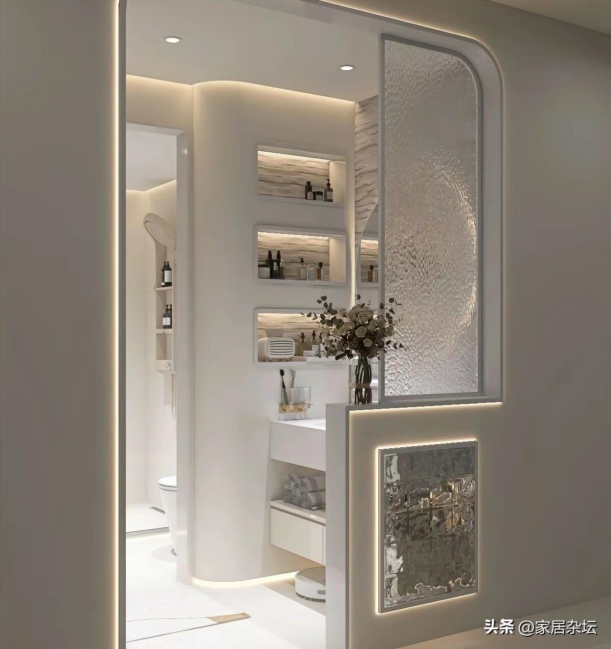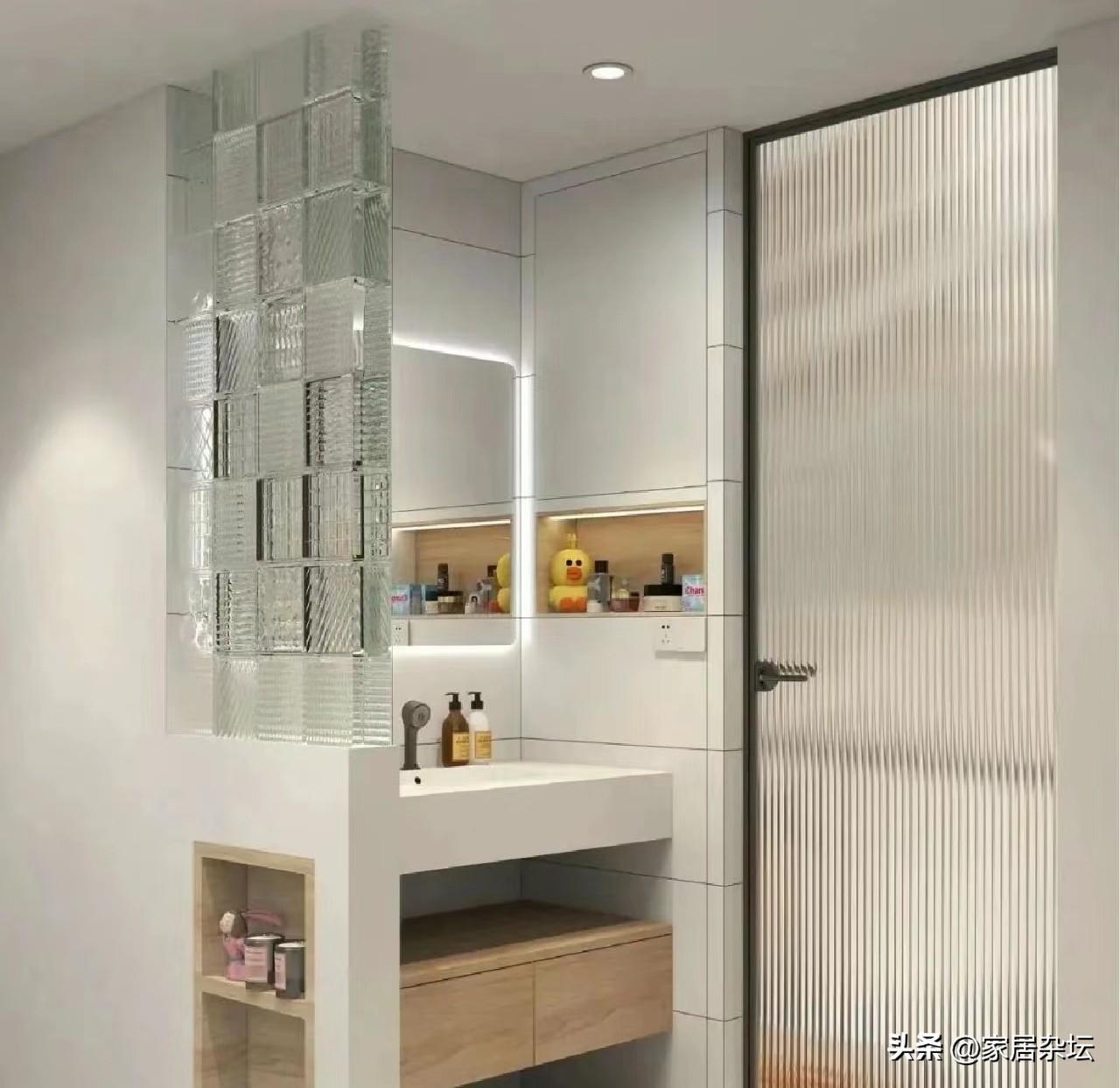 洗臉盆外移比較常用的方案,其實還是半牆設計+玻璃隔斷的設計。