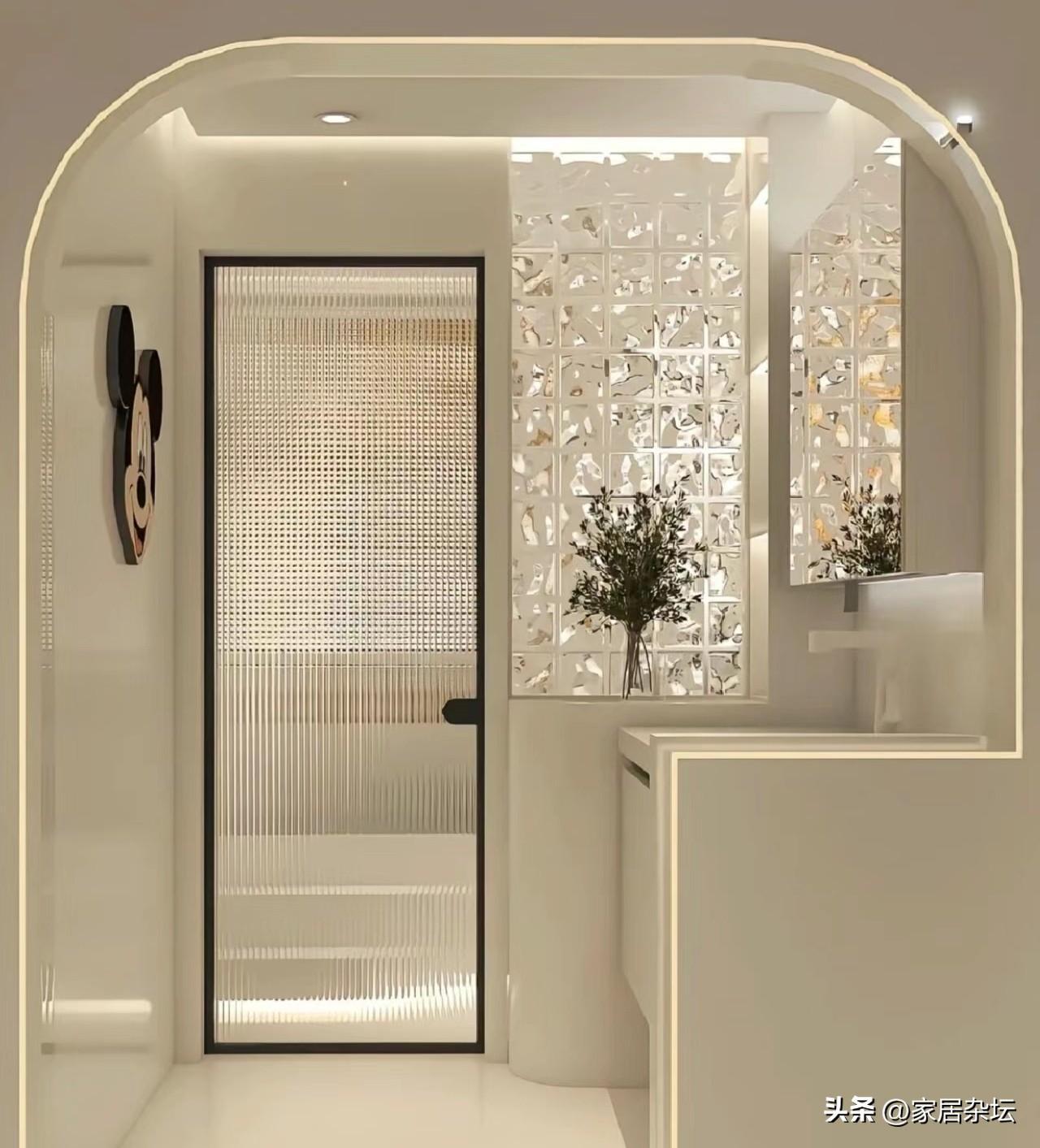 做法就是在洗臉盆的另一側安裝一道玻璃隔斷牆,這樣可以實現對隱私保護的需求。