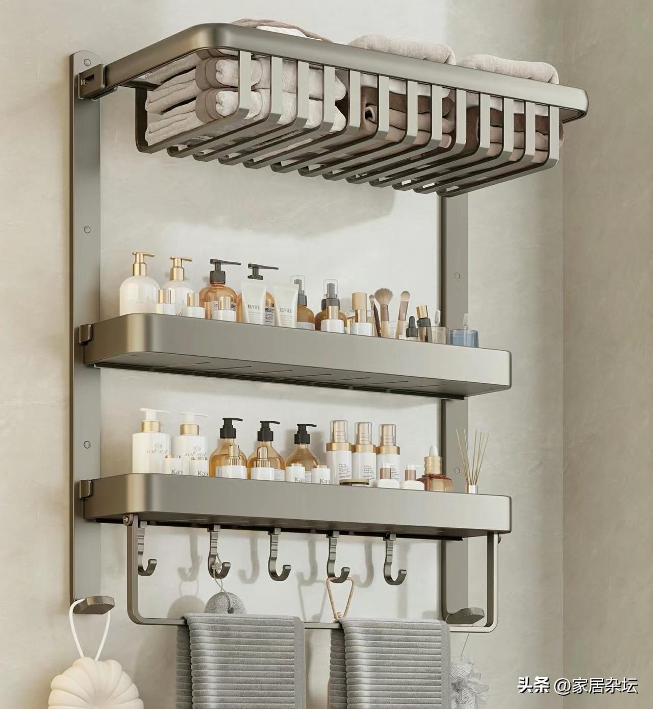 這樣以來,我們衛生間內幾乎所有的洗漱用品,都可以有序的擺放在置物架上。