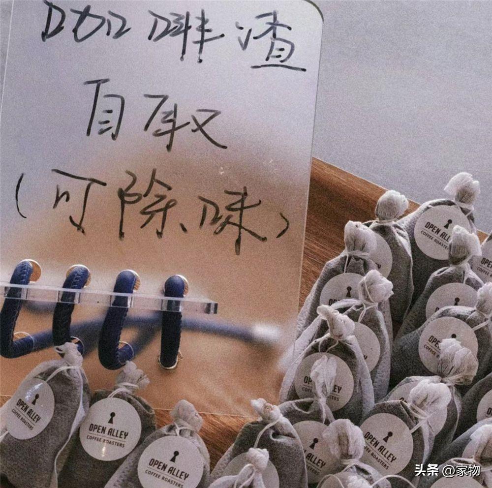 咖啡渣完全曬乾以後,其實是有一定吸附作用的,而且還帶着一股淡淡的咖啡香氣,裝布袋放進冰箱裏、鞋櫃裏或是衛生間的潮溼處,真的能起到祛除溼氣和異味的效果,用幾天失去效果和味道後,再去重新拿一些就行,沒什麼成本。