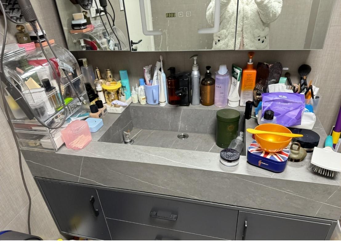 日常洗漱用品和護膚品太多,不管多大的檯面都能被放滿,這麼亂,強迫症表示忍不了一點。