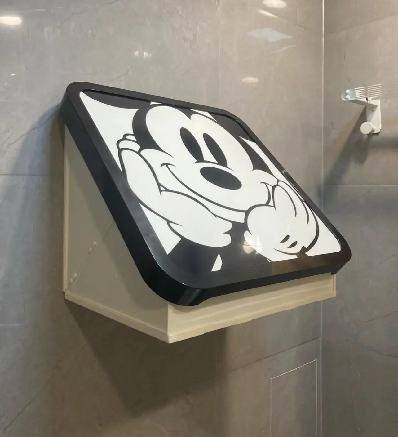 如果覺得網狀收納袋和衛生間裝修不搭,我們還能用這種壁畫式的摺疊收納櫃, 也是免打孔的,只需要用免釘膠黏在瓷磚上。